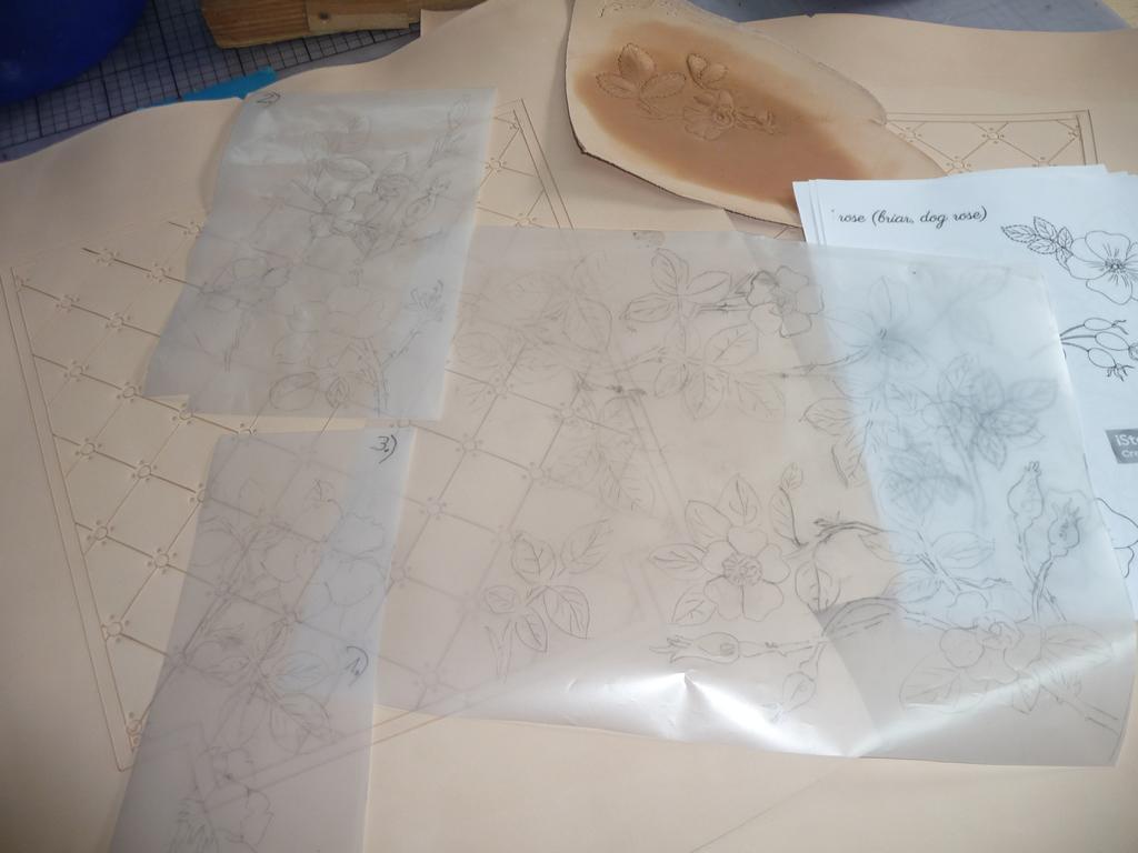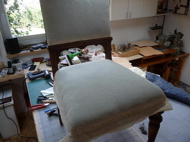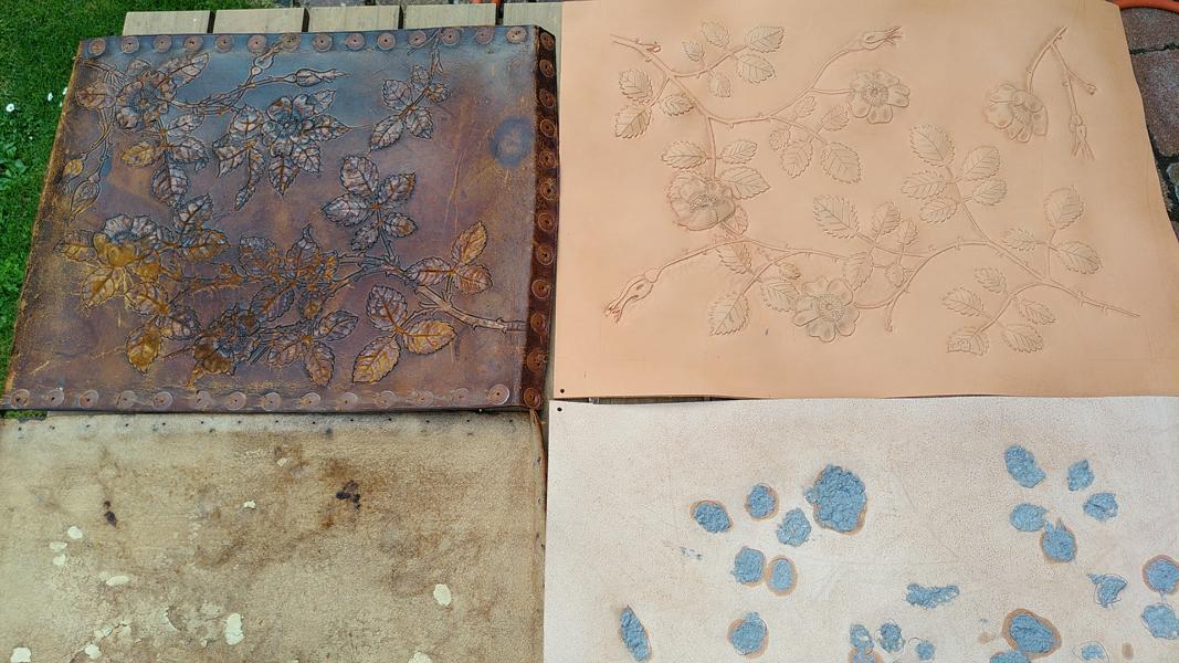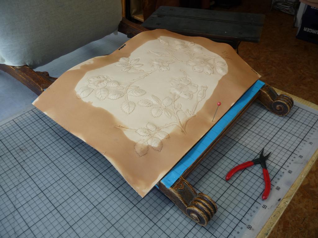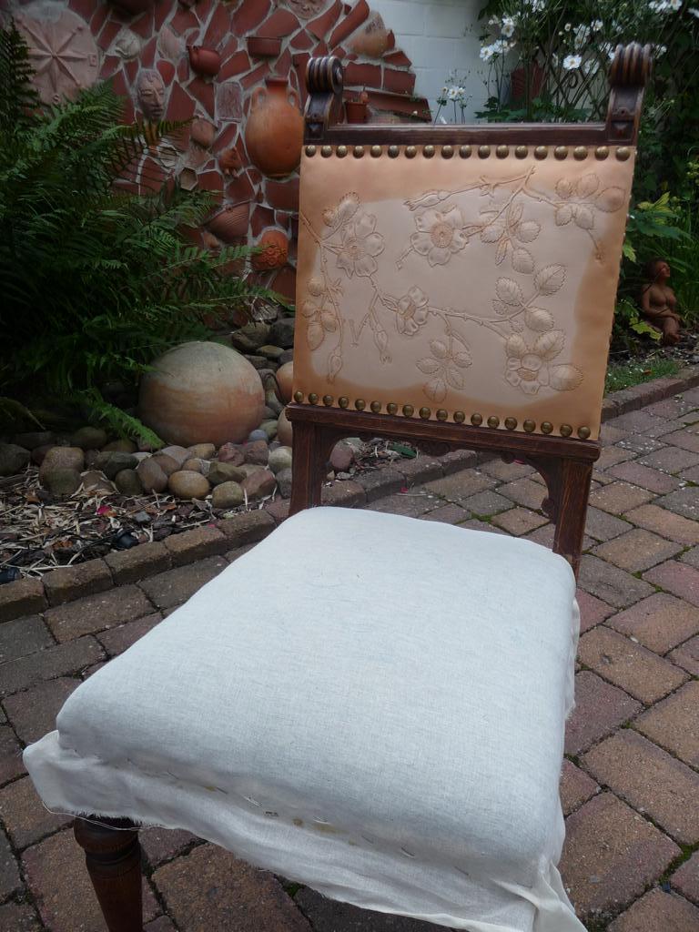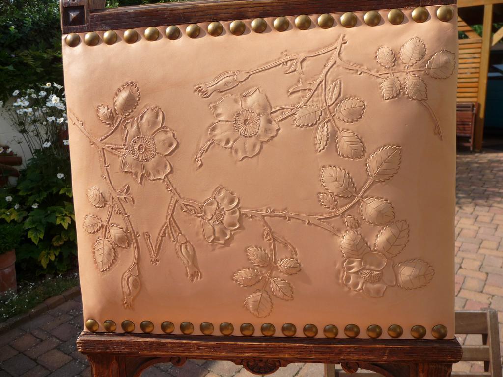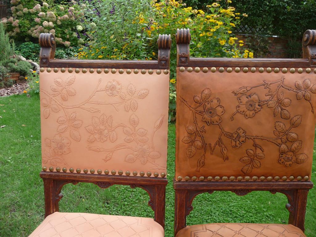 Punzierungen-6 Stühle mit Rosenmuster – sechs Stühle aus dem vorletzten Jahrhundert mit neuen Polsterflächen versehen. – sechs unterschiedliche Motive mit Wildrosen –